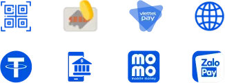 - Chọn hình thức: Ngân hàng, Momo, QR hoặc ví tiền điện tử Crypto